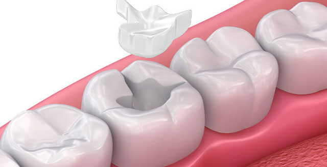 ▲ 虫歯を型取りをして作った詰め物で詰めた場合